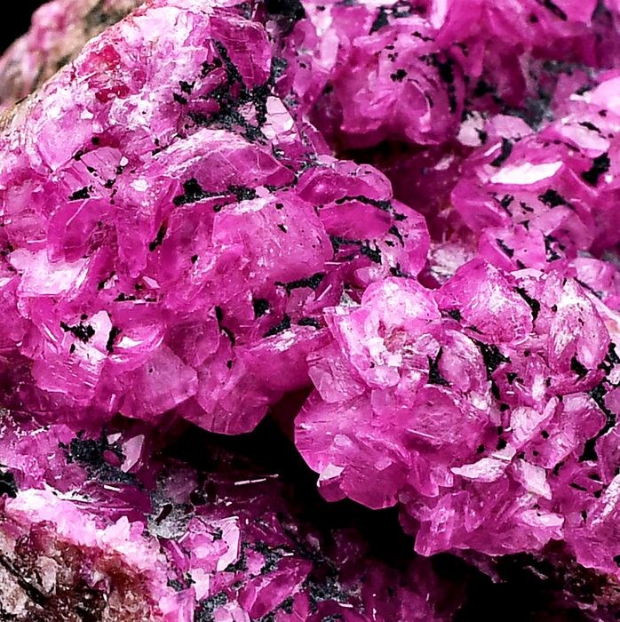Prachtig exemplaar uit Congo DR met een esthetische associatie van Cobaltoaans Dolomiet in een groot aantal kristallen van uitstekende helderheid in een mooie en diepe fuxiakleur in gegradueerde schakeringen en zeldzame diepgroene Kolwezite