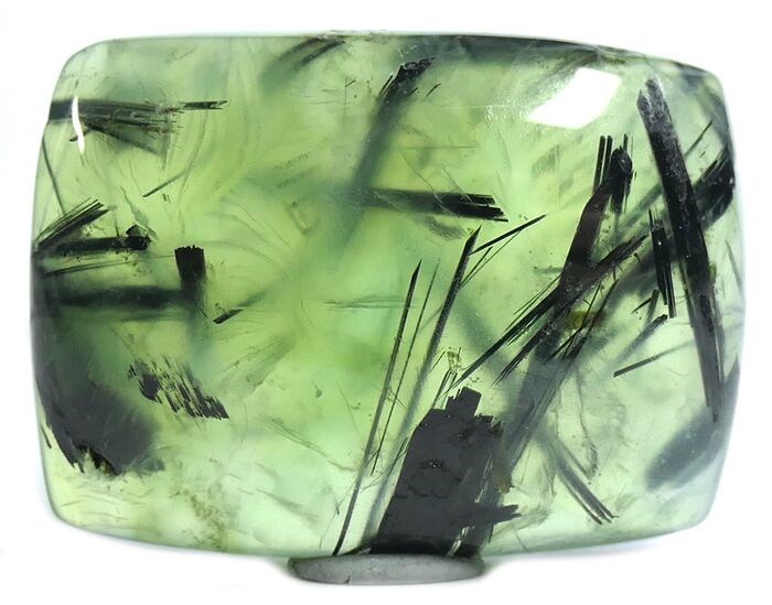 Prehniet met insluitsels van epidode en actinoliet. Schitterend schouwspel, zowel met vergrootglas als met het blote oog. Goede kwaliteit, groot formaat.