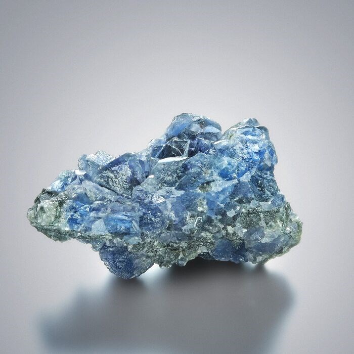 De kleur is uitstekend elektrisch blauw met een groot contrast op waterhelder kwarts.