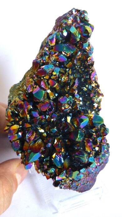 Amethist druse behandeld met edele metalen zoals titanium, goud, kobalt, platina en zilver, waardoor de energie van de kristallen wordt versterkt, wat ook resulteert in oogverblindende kleuren met kostbare regenbogen.
