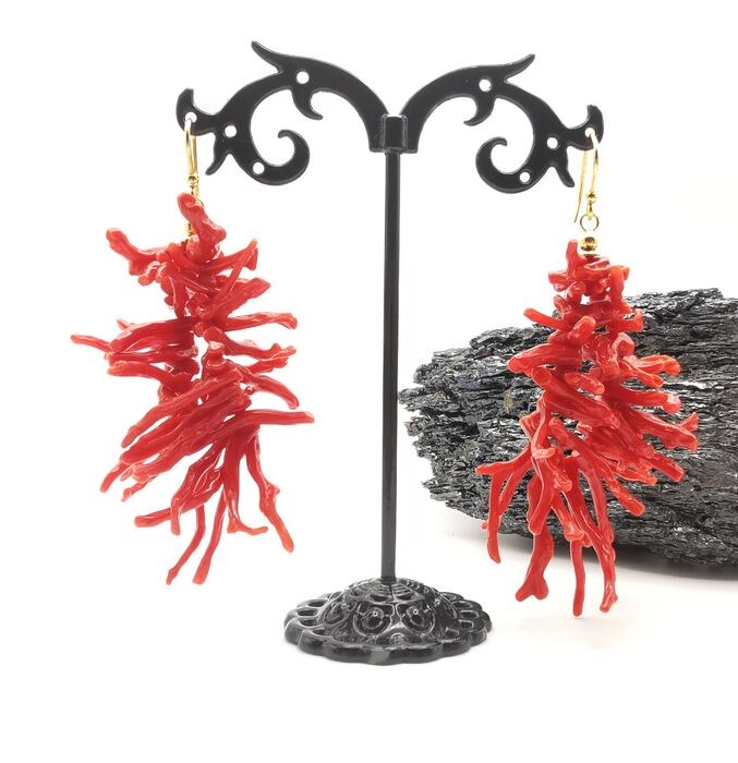 Sardijnse extra kwaliteit natuurlijke bloedkoraal takjes oorbellen, met de hand gemaakt en afgewerkt met 18 kt gouden Pompeiaanse zetting.