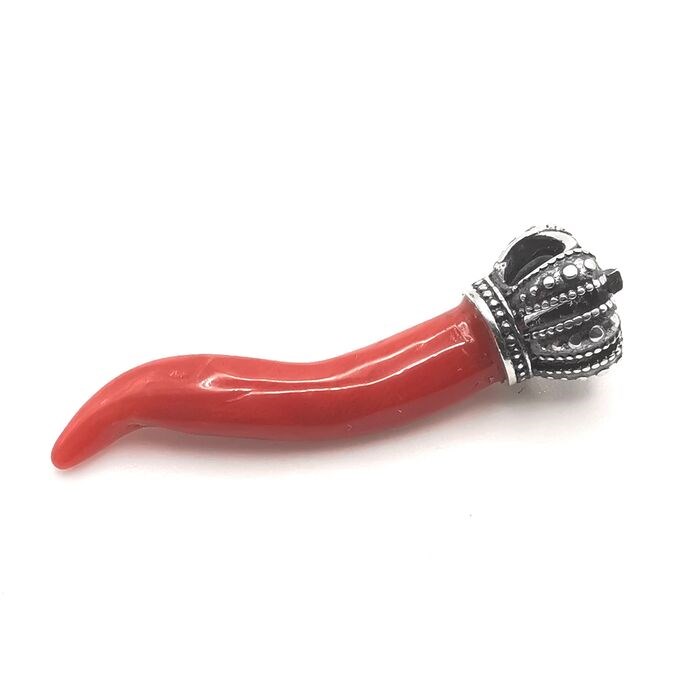 Natuurlijke Sardijnse rode koraalhoorn van extra kwaliteit in 925 verzilverd NIEUW