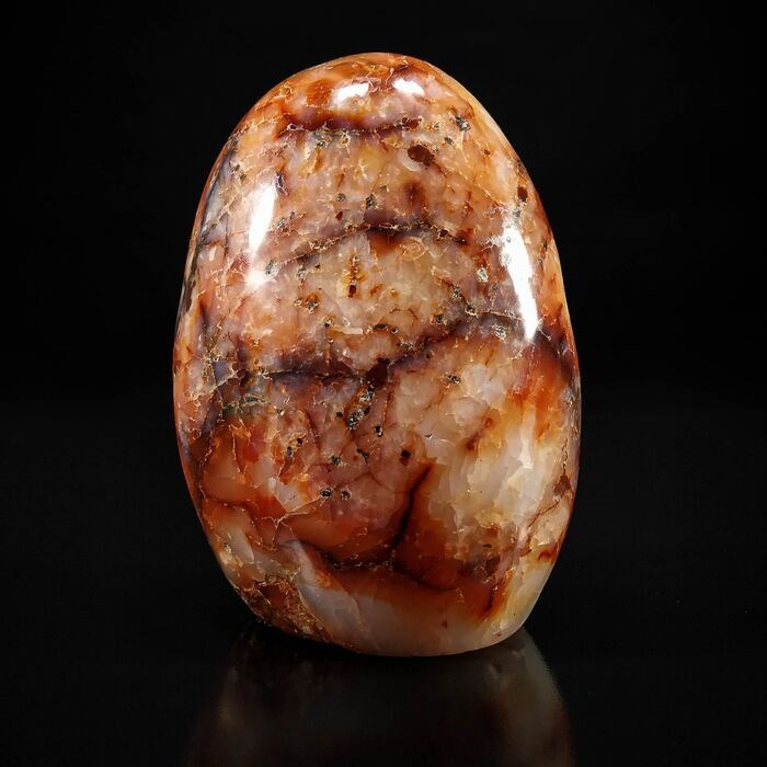 Prachtig vrij gevormd rood agaatblok uit Madagaskar. Unieke en briljante kleuren. Een waar collectors item.