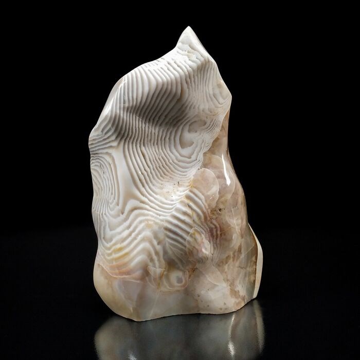 Schitterend en groot blok zebraagaat van hoge kwaliteit uit Madagaskar. Fantastische kleuren en patronen. Zeer mooie slijpvorm maakt de steen uiterst decoratief.