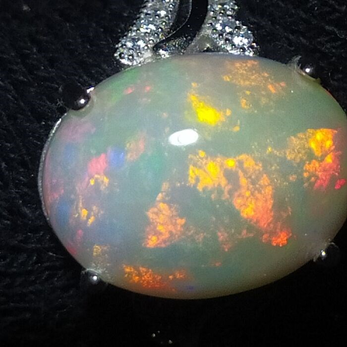 De opaal is 1,5 cm x 1,13 cm.