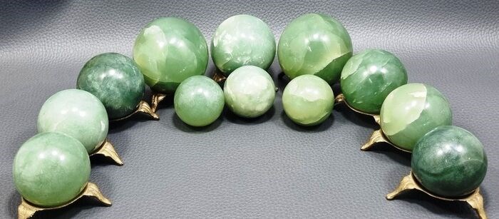 Een unieke, hooggepolijste set Serpentine minerale stenen helende bollen in natuurlijke kleur worden hier aangeboden voor een veiling met een lage minimumprijs. Bollen zijn schadevrij en erg mooi met unieke natuurlijke patronen. De ruwe steen om deze bollen met de hand te snijden, werd gewonnen uit echte Tagao-mijnen in Afghanistan, dit type en kleur steen is zeer uniek in de natuur.
