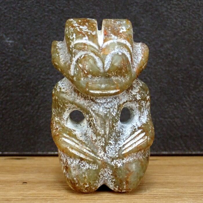 een verscheidenheid aan carneool van oranje kleur, gevlekt en licht rode ader met archaïsche versiering in neolithische stijl van de Hongshan-cultuur.