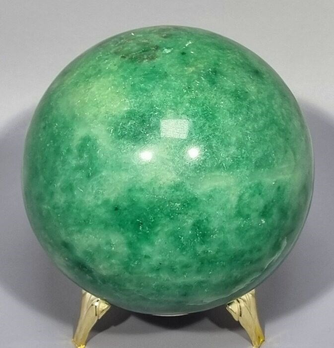 Zeer grote hooggepolijste natuurlijke Aventurijn genezingsbol wordt hier ter veiling aangeboden met een lage minimumprijs. Sphere heeft een natuurlijk uniek patroon waardoor het er prachtig uitziet. Aventurijn staat erom bekend genezende eigenschappen te hebben. Het is gunstig voor het zenuwstelsel en brengt de bloeddruk in evenwicht en stimuleert de stofwisseling, waardoor het cholesterol wordt verlaagd. Aventurijn werkt ontstekingsremmend en verlicht huiduitslag, allergieën, migraine en kalmeert de ogen. Het geneest longen, sinussen, hart, spier- en urogenitale systemen.
