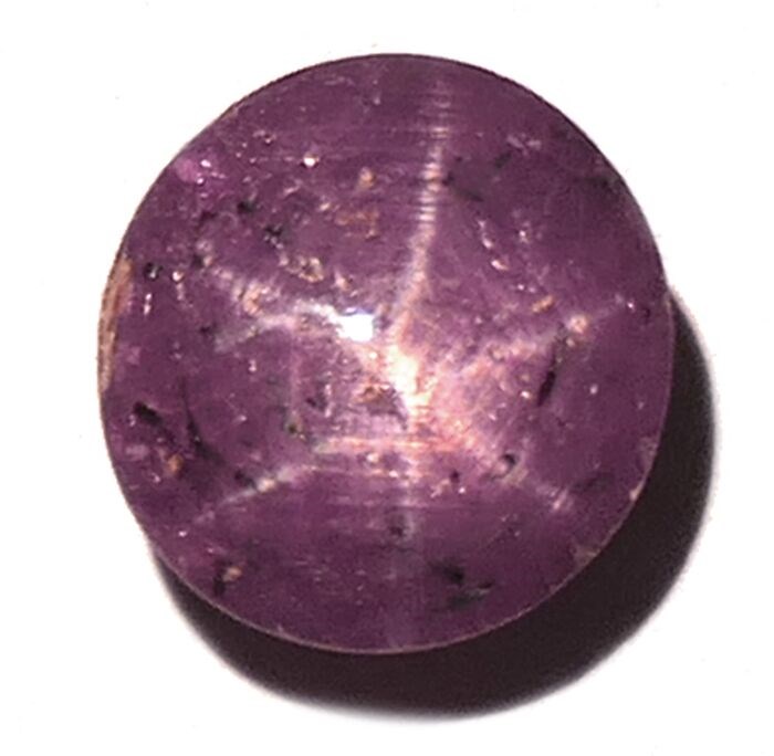 — Kleur: donker paarsachtig rood met duidelijke ster zichtbaar onder gerichte lichtstraal
