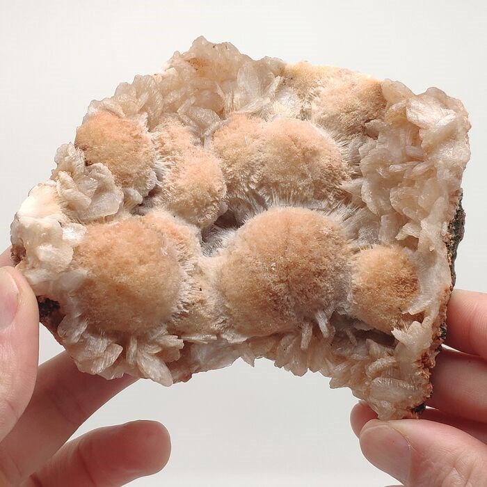 Zeer mooie donkere heldere Thomsonite bolletjes kristallen met witte en glanzende Stilbiet kristallen en Heulandiet formaties. Zeer esthetisch exemplaar
