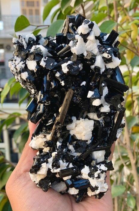 Enorme bos natuurlijke beëindigde combinatie van toermalijnkristallen met Rose Albite-exemplaar op matrix. Zeer zeldzaam kristal en het is erg moeilijk om zo'n schadevrij exemplaar in natuurlijke vorm te vinden. Zeer goede gelegenheid voor verzamelaars om deze schoonheid aan hun verzameling toe te voegen.