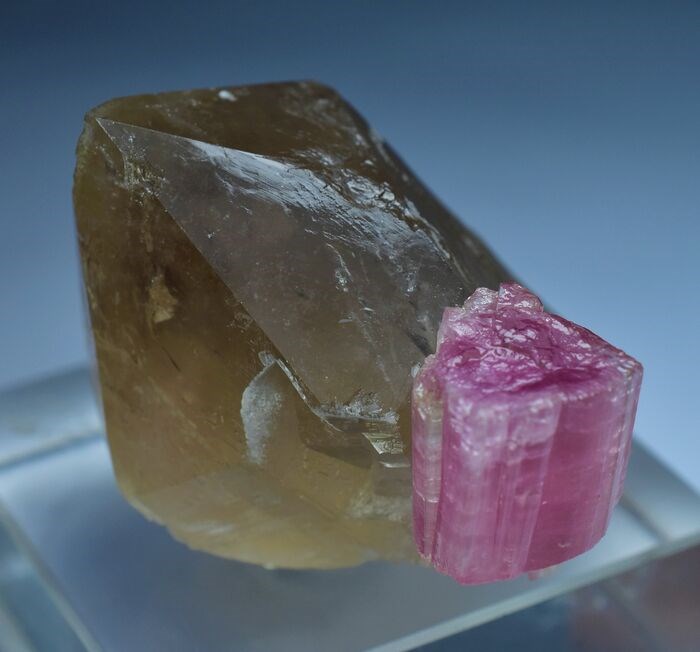 Presentatie van een zeer mooie toermalijnkristal gecombineerd met kwarts op matrix uit Afghanistan