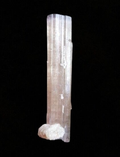 Een zeldzame "blue cap" toermalijn uit Parok, Afghanistan, met een klein kristal van albiet bevestigd aan de basis