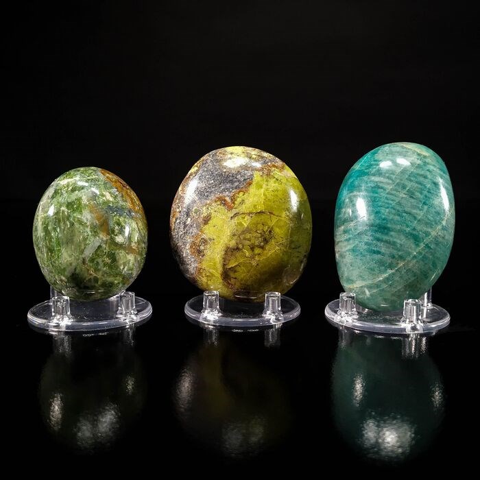 Trio van decoratieve mineralen gemonteerd op persoonlijke