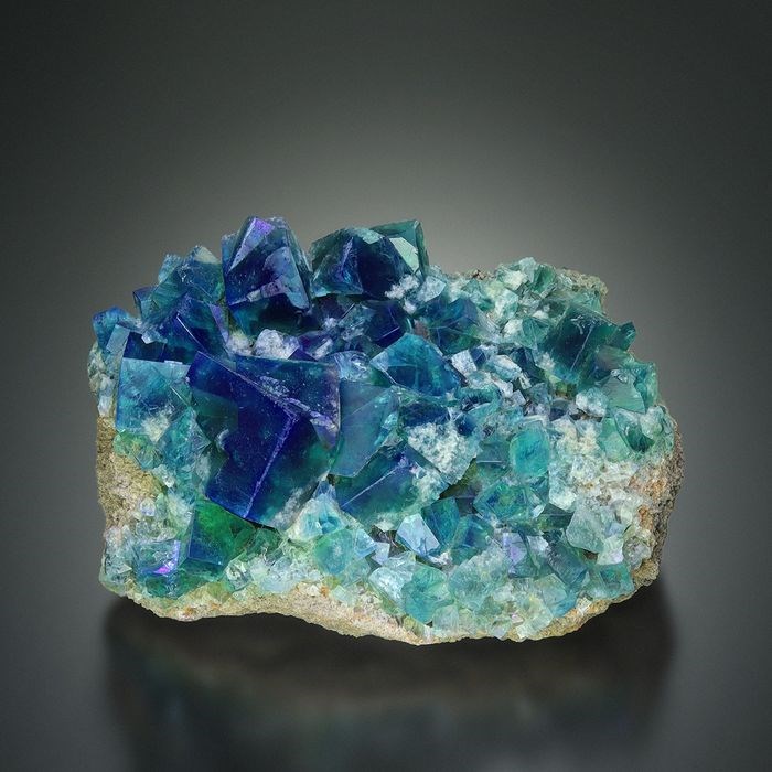Perfecte groei van perfect heldere fluorietkristallen van Gem-kwaliteit uit de klassieke Rogerley-mijn.