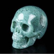 Zeer bijzondere blauwe Chrysopraas schedel, dit is een mineraal van de Chalcedoon familie. Het is altijd gebruikt als halfedelsteen om sieraden of decoratieve elementen te maken.
