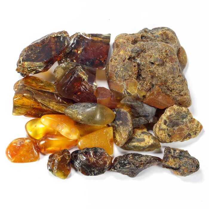 Een interessante collectie barnsteen, verzameld uit verschillende landen, is perfect voor uw verzameling of het maken van kleine sieraden.
