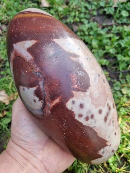 Deze prachtige Shiva Lingam is gevonden in de Heilige Narmada Rivier in India. De Lingam is op natuurlijke wijze gevormd door het snel stromende water en zand in de rivier.