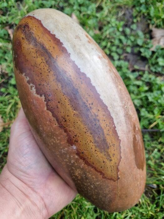 Deze prachtige Shiva Lingam is gevonden in de Heilige Narmada Rivier in India. De Lingam is op natuurlijke wijze gevormd door het snel stromende water en zand in de rivier.