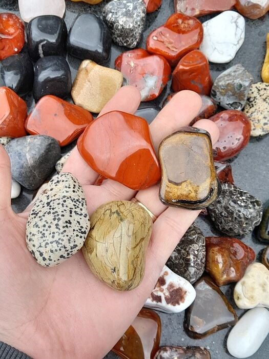 Verzameling mooie grote trommelstenen van ca. 3 kg.
