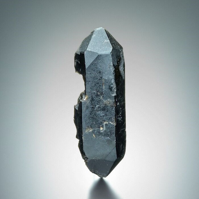 Dit is een uniek exemplaar van Morion, dubbel beëindigd kristal met geëtste structuur op de achterkant
