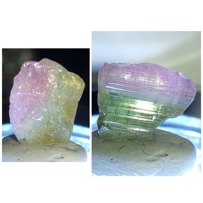 Zeldzame stukjes watermeloen gesneden toermalijn.