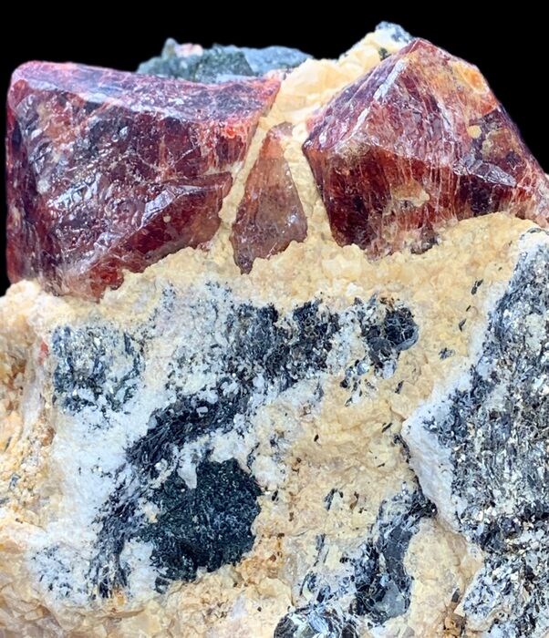 Esthetische zirkoonkristallen op harde matrix. De kristallen zijn rijk aan glans en kleur. Daarnaast zijn de kristallen ook goed afgesloten.