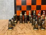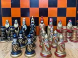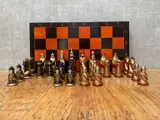 Dit is een schaakspel met Kursk pionnen. De pionnen dateren uit de jaren 80 en komen uit Rusland. Het zijn dus echt unieke vintage pionnen. Het schaakbord is in gebruikte staat. De pionnen zijn nog een vrij goede staat voor hun leeftijd.
