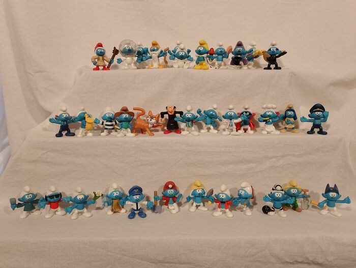 Aangeboden wordt een collectie van 36 verschillende Smurfen poppetjes.