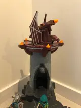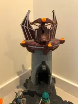 Deze fantastische speelset neemt je mee in een gevaarlijke wereld van de burchten, ridders en zelfs draken. De rode vuurdraak valt de indrukwekkende drakentoren met beweeglijke elementen aan, maar de vier ridders komen niet zonder wapens. Daarvoor in de plaats komen ze met een magische lichtlans en een lichtkruisboog, die door de leds zelfs licht geven. (Sommige batterijtjes dienen vervangen te worden).