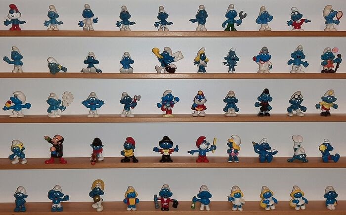 Beautiful collection of fifty different smurfs, released by Schleich & Bully.