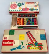 Houten constructie bouwsets van Sio Montage. Niet compleet.