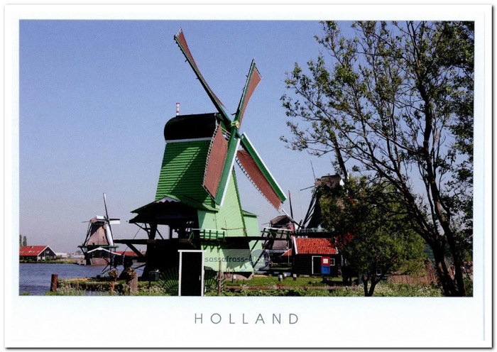 Ansichtkaart met een afbeelding van de De Gekroonde Poelenburg die je terug kunt vinden op de Zaanse Schans en het is een houtzaag-paltrokmolen. Ideaal voor postcrossing.