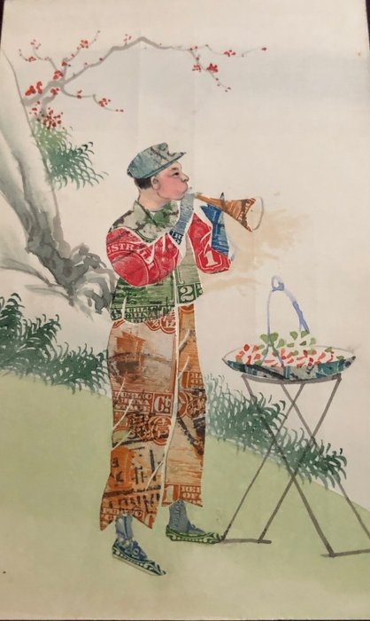 China - Chinese postkaarten met postzegelcollage - Ansichtkaarten (Groep van 6) - 1912-1920