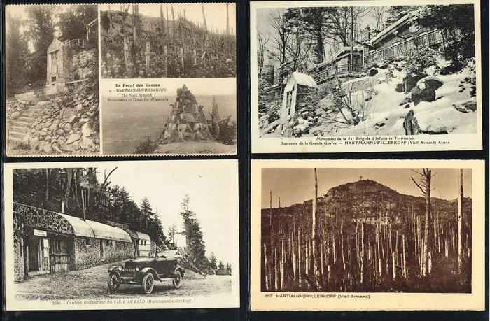 Belangrijke verzameling van 168 kaarten over de oorlog van 1914/18 in de Elzas met verwoeste slagvelden, dorpen, huizen, kerken en viaducten.