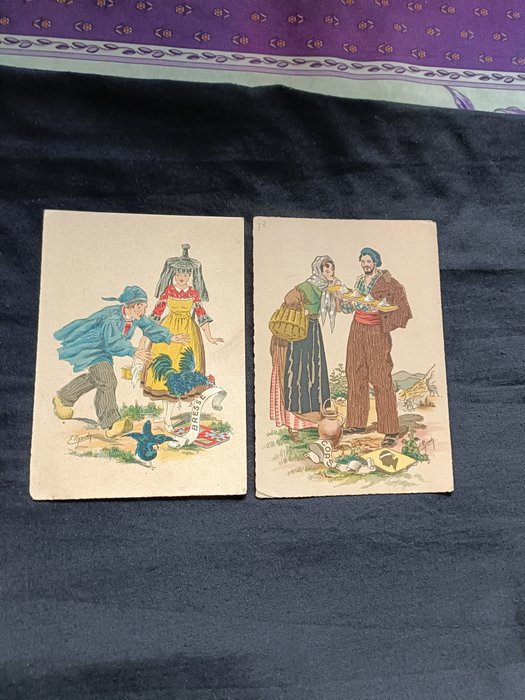 Set van 142 kaarten over de folklore, gewoonten en gebruiken en hoofdtooien van de Franse streken. 18 kaarten zijn daarentegen Belgische folklore en in zeer goede staat.