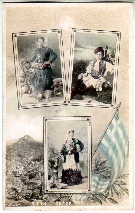 Zeer zeldzame en indrukwekkende kleine collectie met 21 zeldzame items uit Griekenland die religie en andere vieringen en folklore tonen met populaire dansen uit verschillende regio's met feestelijke of alledaagse kostuums - Eerste helft 20e eeuw - Zie foto's.
