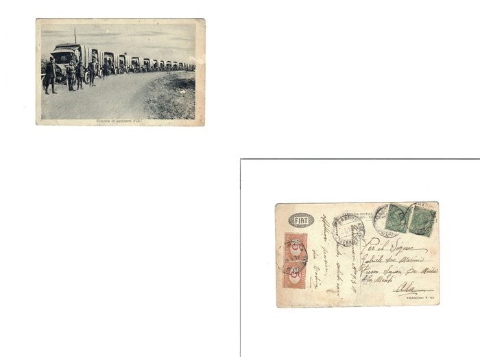 Italië - Eerste Wereldoorlog - Ansichtkaart "Common Sense and Tricolore" Florence 1927 Ezio Anichini - Enkele Ansichtkaart (Ansichtkaart "Fiat Truck Column" uit de Eerste Wereldoorlog met fiscale zegels erop van 1) - 1919