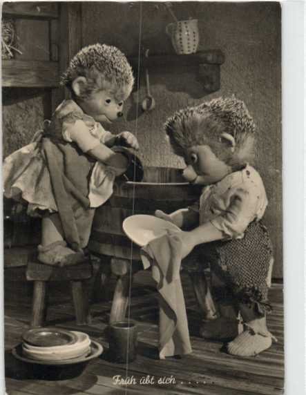 Mecki is een fictief personage dat oorspronkelijk uit een poppenfilm van de gebroeders Diehl kwam en later de mascotte van het tijdschrift Hörzu werd als stripfiguur . De egel dankt zijn naam aan de voormalige hoofdredacteur van Hörzu , Eduard Rhein . Het redactionele teken gaf zijn naam aan het Mecki-kapsel .Mooie gevarieerde collectie. De kaarten hebben het formaat van ± 10 bij 15 cm..Er zijn kaarten bij met gebreken en sporen van gebruik en ouderdom. Zie scans !