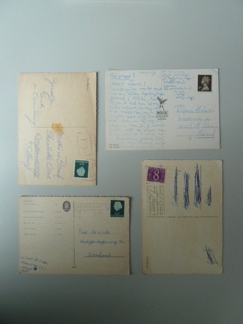 Betreft een collectie van 53 originele ansichtkaarten van The Beatles. De meeste kaarten (de zwart-witte ansichtkaarten) zijn in de jaren zestig uitgegeven door firma gebr. Spangenberg te Rotterdam - Antwerpen. Het betreffen 19 verschillende gelopen zwart-wit ansichtkaarten en 4 gekleurde gelopen ansichtkaarten. Tevens 23 niet gelopen zwart-wit ansichtkaarten en 5 gekleurde niet gelopen ansichtkaarten, alsmede 3 niet gelopen gekleurde groot formaat ansichtkaarten en 1 groot formaat zwart-wit foto. Verder zijn 10 niet gelopen gekleurde ansichtkaarten extra bijgevoegd die vermoedelijk uit de vroege jaren 70 zijn. De bijgevoegde foto's spreken voor zich.