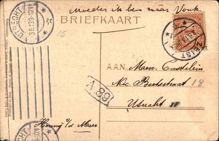 Een grote partij kaarten van kleinere plaatsen in de provincie Utrecht. De kaarten zijn per plaats gerangschikt. Ook kaarten met bos, heide en landschap. Zeist ± 40 exemplaren. Daarna Austerlitz ± 20 , Bilthoven ± 30, Lage Vuursche ±35, Het dorp Doorn ±35. Bijzondere vermelding verdient de mini-collectie Huize De Zonheuvel te Doorn. Dit onder diverse namen zoals Jeugdherberg, Maarten Maartenshuis, Confwerentiecentrum, etc. (mini-collectie ongeveer 80 kaarten). ik zag een enkele dubbele kaart. Diverse kaarten met gebruikssporen.