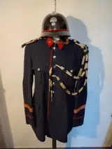 Uniform 1ste wachtmeester Rijkswacht/Gendarmerie jaren ' 50 : vest , fiberhelm , sierkoorden