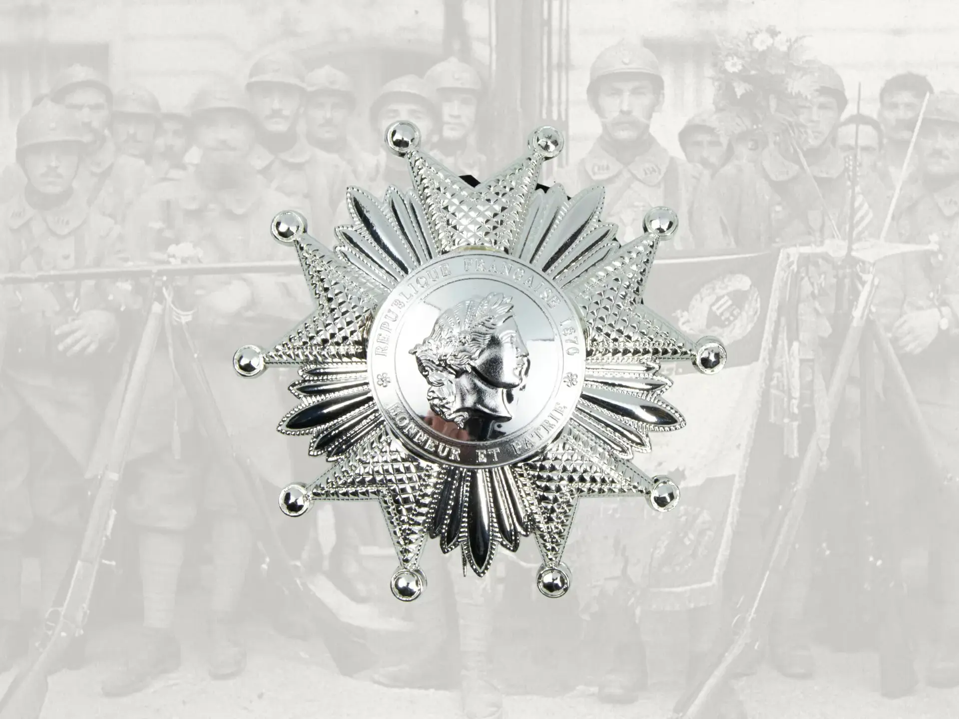 Te koop Orde / Borstster Legioen van Eer.Klasse Groot Officier.Zilverkleurig.van 1870 - 1951.Verzendkosten €.6,95 met track and traceNatuur getrouwe replica van de Orde (museum Kwaliteit)