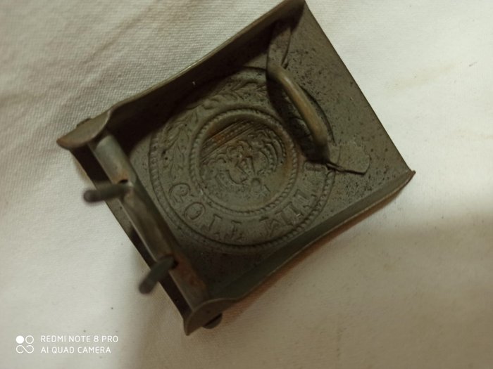 Fibbia tedesca ww1 Prussia - fibbia in ottone con iscrizione Gott mit Uns e una corona al centro. Ottimo stato