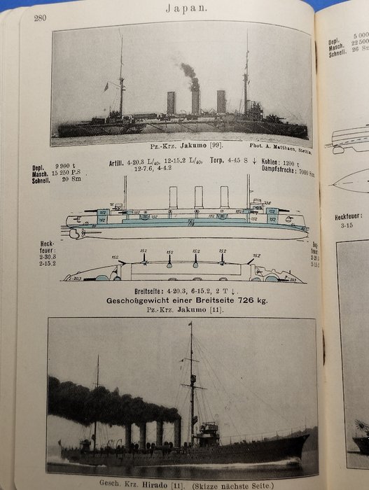 583 pagina's met 1045 scheepsfoto's, schetsen en silhouetten van alle schepen van de Duitse Keizerlijke Marine, inclusief de Deutschland, Seydlitz en onderzeeërs, evenals de oorlogsschepen en onderzeeërs van de Entente zoals Italië, Frankrijk, Engeland, VS, Japan en Rusland enz...