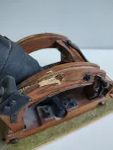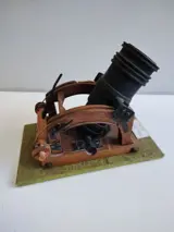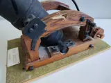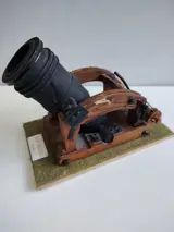 Zwaar metalen kanon op houten onderstel , zeer gedetailleerd uitgevoerd , kleine schade aan het houtwerk , afmetingen voetplaat 18/30 cm , hoogte kanon 20 cm