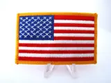 Te koop Embleem / Patch Vlag USA met gele border.Aan de achterzijde heeft deze patch een textiel lijm laag.Afmeting Patch is 5.7 cm x 9.0 cmVerzendkosten €.1,45