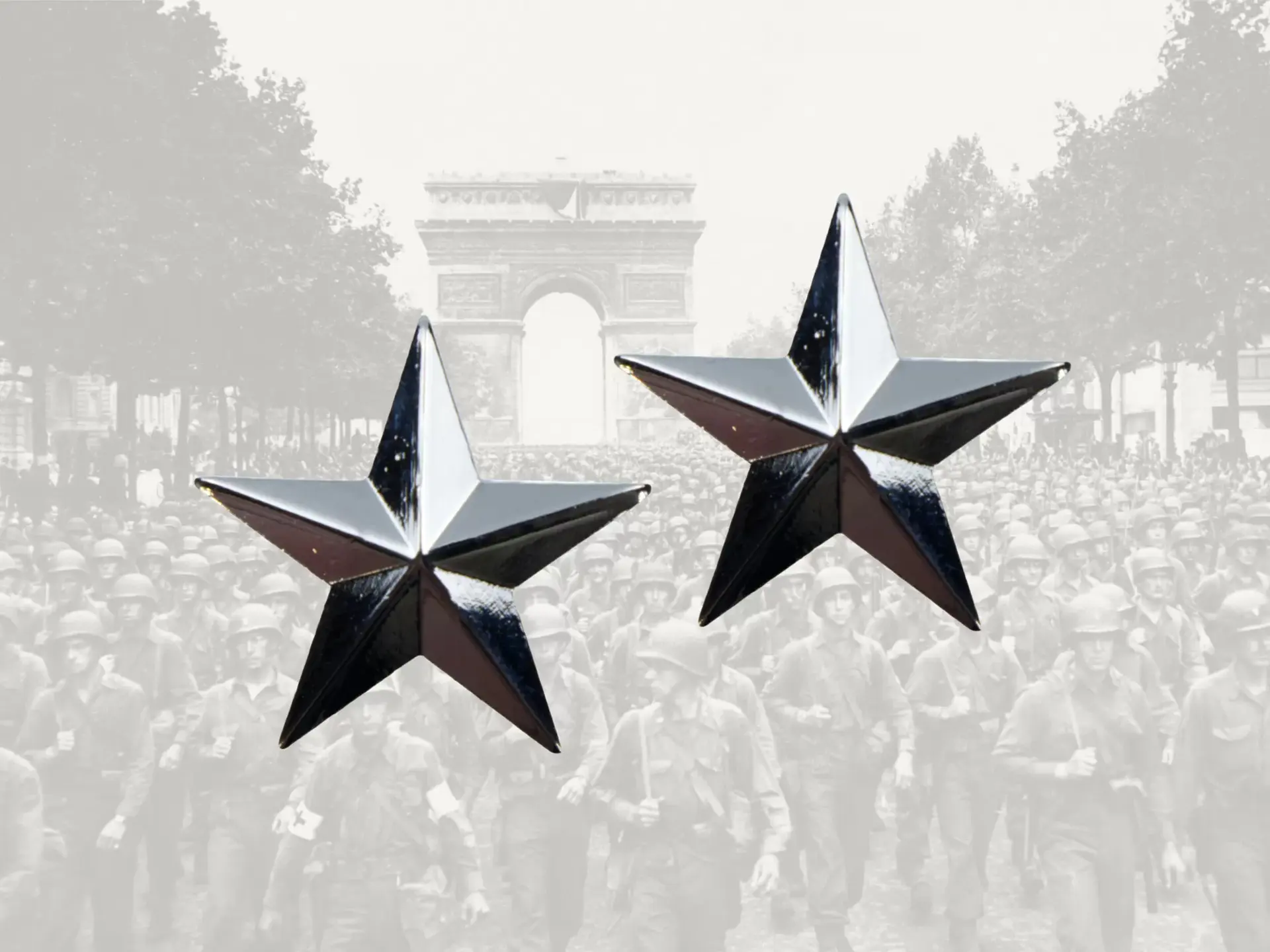 Te koop set van 2x 1 sterBrigade GeneraalDeze zaten vast op de schouderlussen en aan de linkerkant van de garnizoensmuts.Hoogte ca. 22 mmVerzendkosten €.1,45