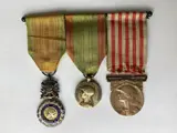 Drie oude médailles met hun linten.