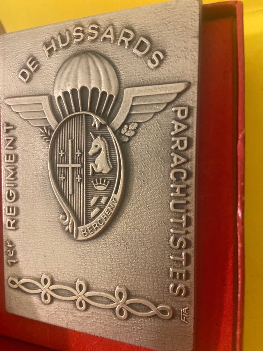 Plaat Medaille Onderscheiding 1e Regiment Huzaren Parachutisten